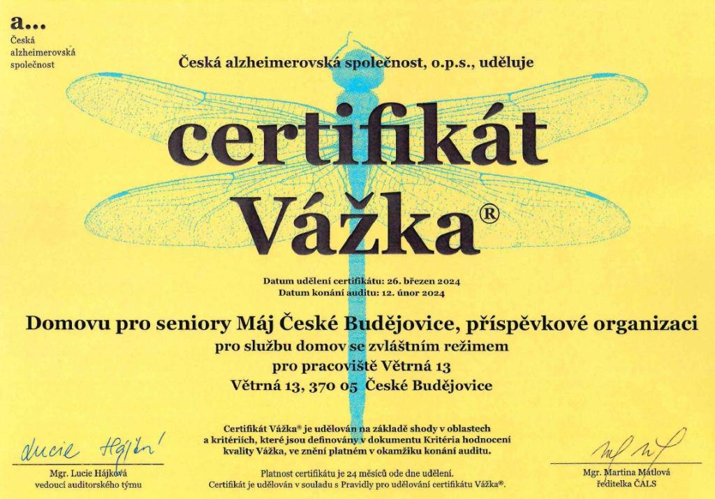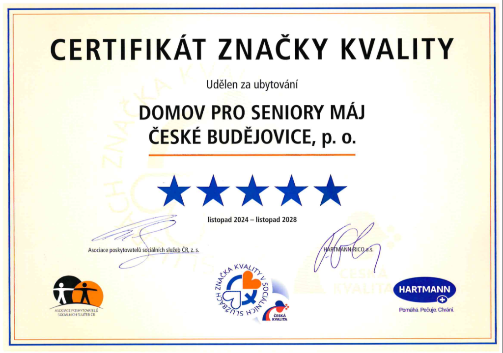 Domov pro seniory Máj vytváří podmínky pro důstojný, spokojený a smysluplný život pro toho, kdo vzhledem ke svému zdravotnímu stavu a sociální situaci potřebuje péči, kterou není možné zajistit v domácím prostředí.